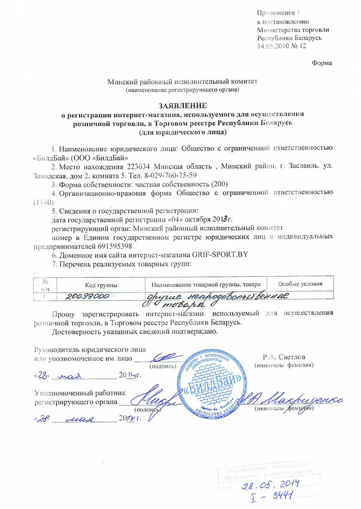 Регистрация 691595398 от 04.10.2013 г. Минский райисполком